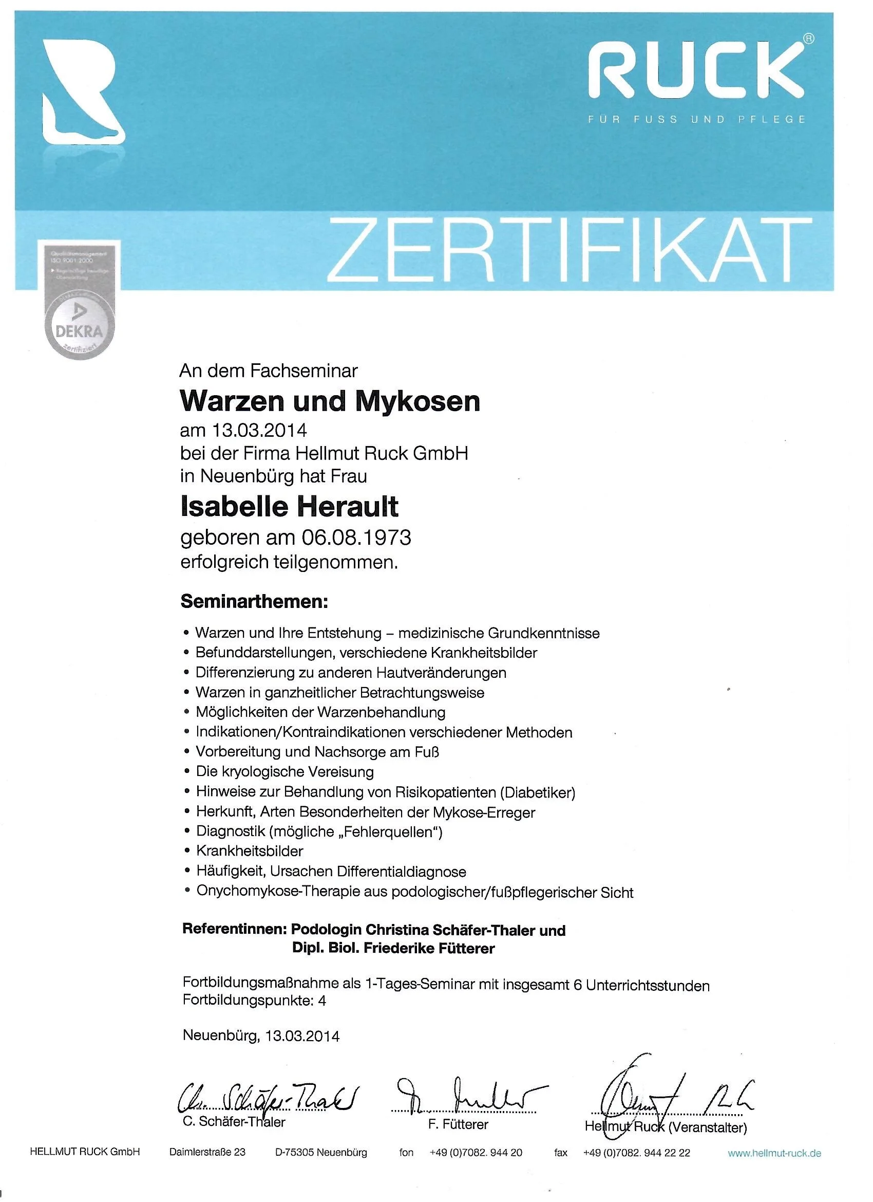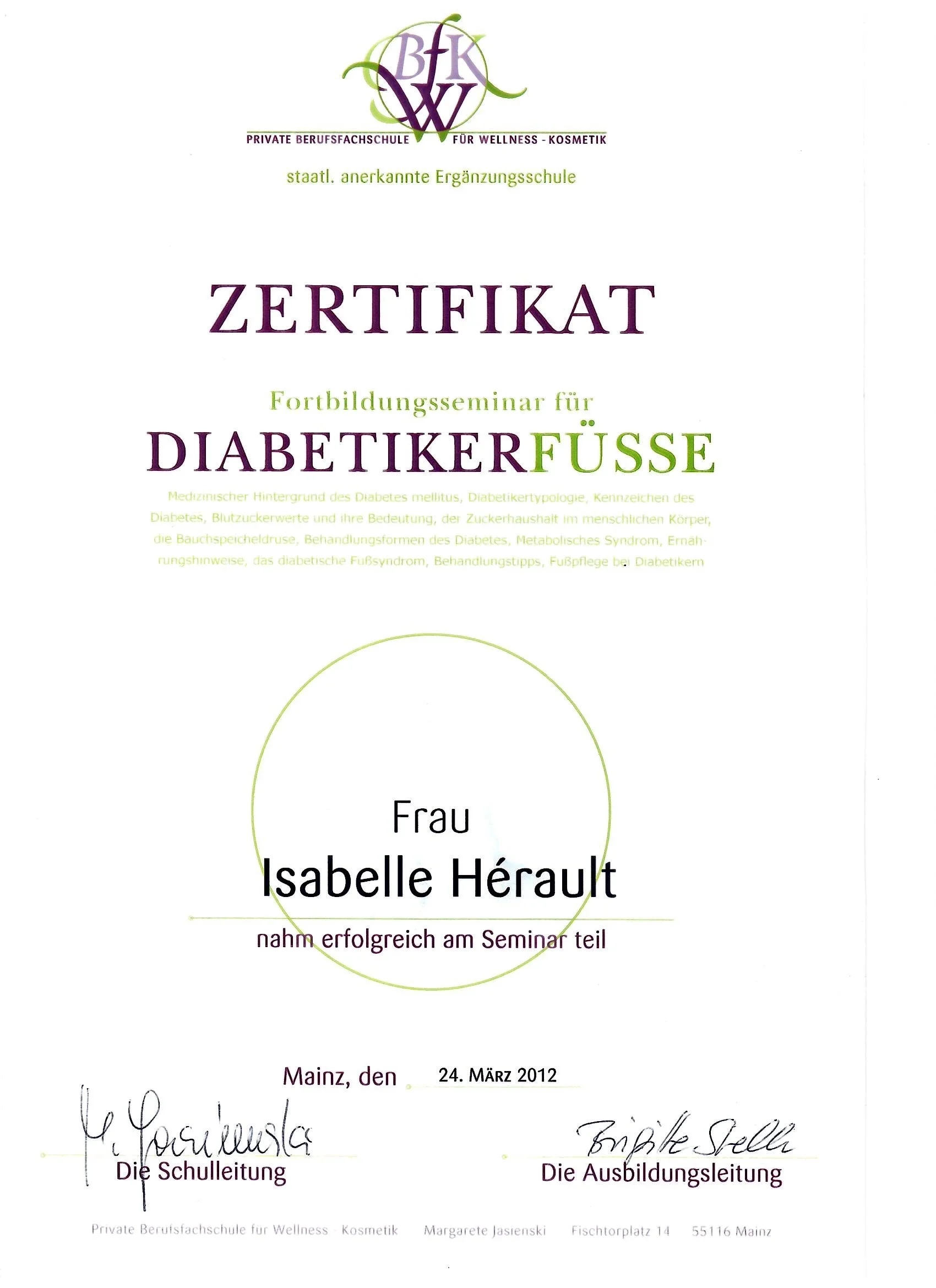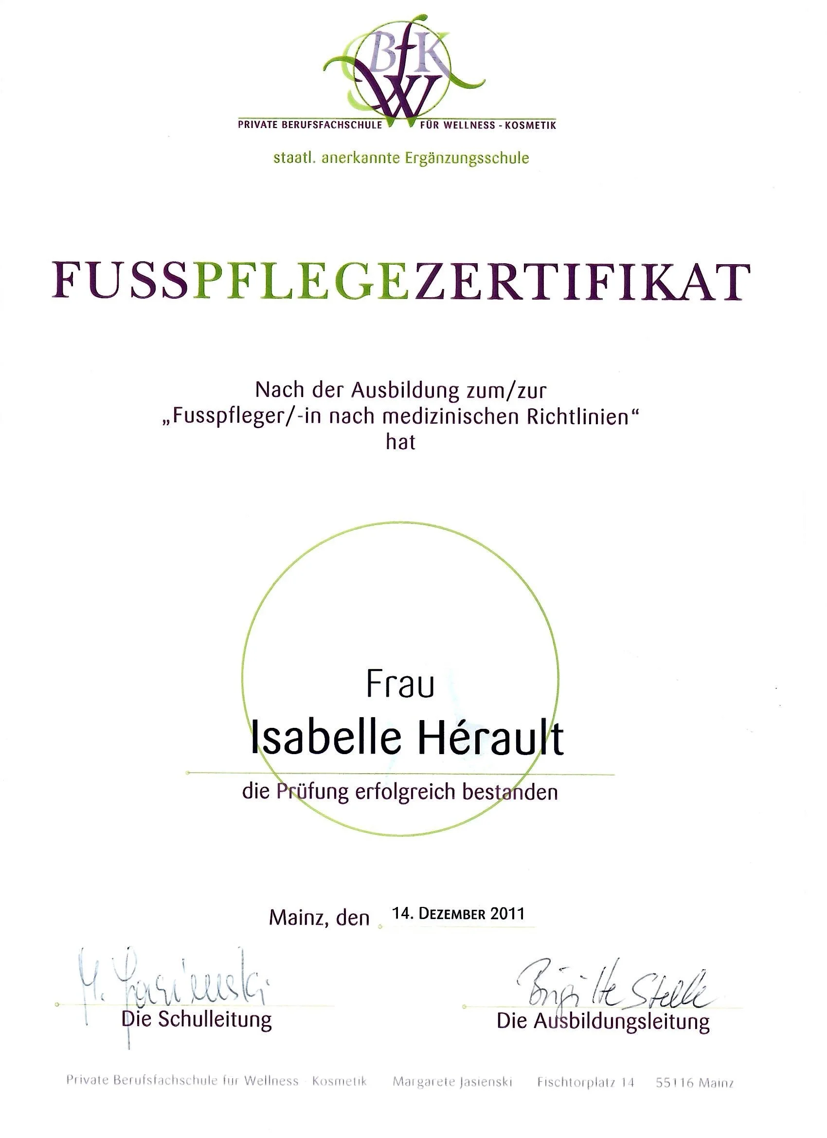 Meine Reise begann im Dezember 2011, als ich erfolgreich meine Prüfung zur Fußpflegerin nach medizinischen Richtlinien an der Privaten Berufsfachschule für Wellness und Kosmetik in Mainz absolvierte. Seit Februar 2012 bin ich selbstständig tätig und habe seitdem mein Engagement und meine Leidenschaft für die Fußpflege kontinuierlich ausgebaut.