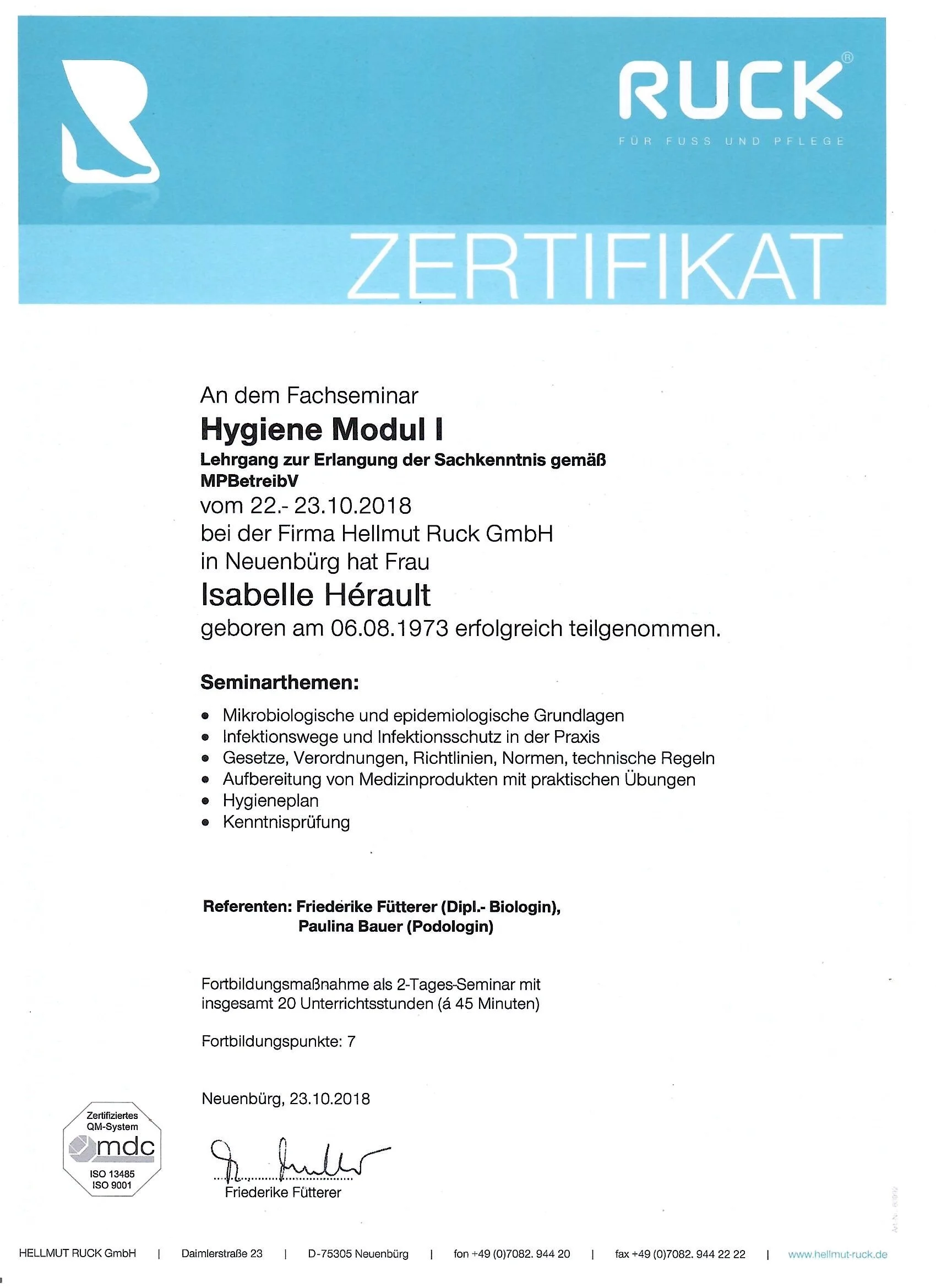 Mein Name ist Isabelle Hérault, und ich bin seit 13 Jahren leidenschaftliche Fußpflegerin.